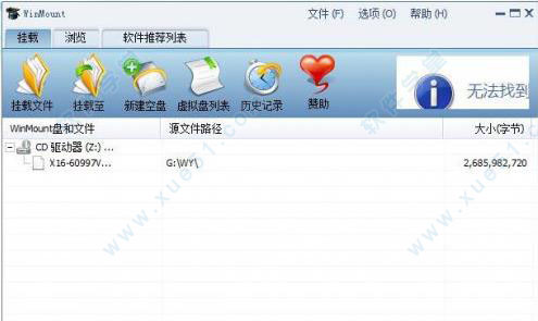 3、winmount中文版支持把 ISO、 CUE/BIN、 MDS(Media Descriptor File)、 CCD(CloneCD)、BWT(Blindwrite)、NRG (Nero) 、PDI(Instant CD/DVD)、BW5(BlindWrite 5)、ISZ(Compressed ISO images)、PFC等多种光盘映象文件直接 Mount 为一个光驱,给游戏玩家带来很多方便。这时,它是一个