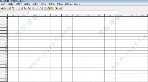 2、接下来,便是具体的输入过程了。首先,我们要对数据文件有一个大致的了解,这对以后的学习十分关键。打开之后,我们便会看到一个类似EXCEL电子表格的东西,但如果你因此便把数据文件理解为是类似于EXCEL的东西那么就错了,虽然数据的表现形式酷似EXCEL,但就实质而言它更接近于一个数据库文件,每一个数据列都有它的列名称(也就是我们刚刚起的代号)、列属性(也就是刚刚我们决定的数据属性),这些都类似于数据库中的字段名称、字段属性,如果读者以前学习过数据库的相关知识,那里理解起来就十分简单了。