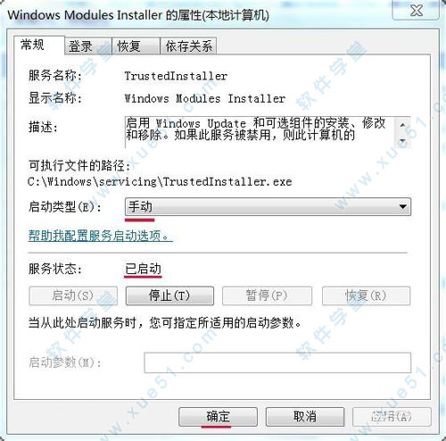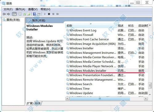3、如果Windows Modules Installer服务被禁用,我们必须把它更改为启用 - 手动,重启计算机,再安装应用程序。