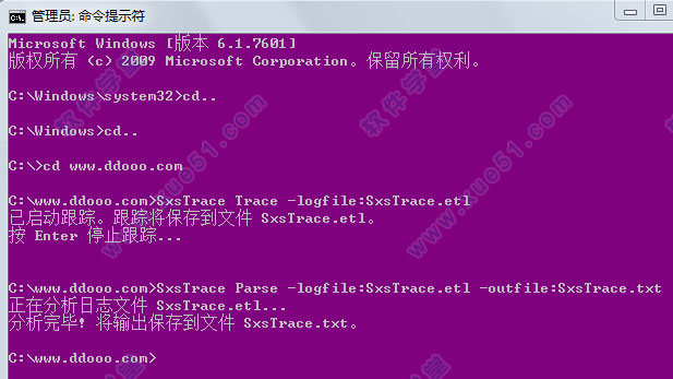5、在命令行输入:SxsTrace Parse -logfile:SxsTrace.etl -outfile:SxsTrace.txt,解析跟踪信息为文本。