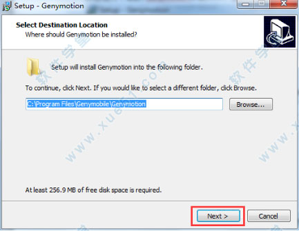 1、到本站下载Genymotion 破解版软件,然后点击安装包中的安装程序开始安装,会弹出安装地址,我们选择默认安装地址,方便后面破解,点击next。