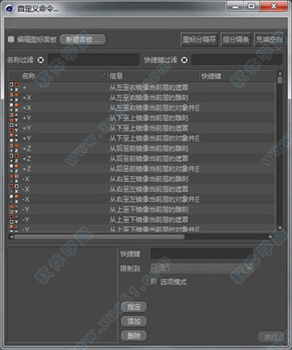 在窗口菜单(Window)下,布局选项(layout)下拉菜单中,找到命令管理器(command manager)选项(或者直接按快捷键Shift+F12)。在这里可以用名称过滤项找到需要设置快捷键的命令,在下方快捷中输入想要指定的快捷键,然后点击指定(Assign),即可完成快捷键设置。