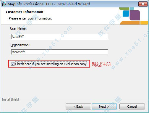 4、选择“Chexk here if you are...”,跳过产品序列号和注册码。
