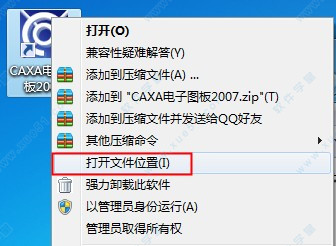 1、如果你记得软件安装位置可自己打开,不知道的用户鼠标右键桌面快捷方式选择打开文件位置即可找到安装路径,默认路径为:【C:\CAXA\CAX