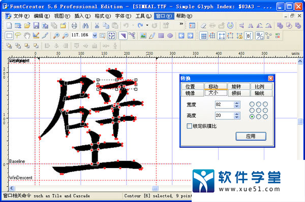 2、Font Creator 的主要功能包括:查看和编辑Turetype 和OpenType字体、创建新的符号或字体、修改单个字形的轮廓、添加或编辑合成符号、调整字符距离、编辑修改字体名称和转换单个字符或整个字体等。