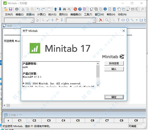 minitab17中文破解版成功破解,运行打开软件,用户就可以无限制、免费使用本软件了