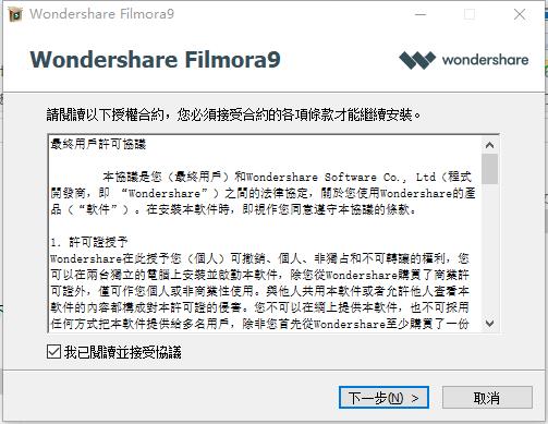 Wondershare Filmora 9.0软件,如果没有的话可以到本站下载,进入安装界面窗口,选择繁体中文。