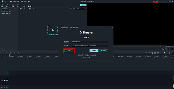 7、然后回到桌面运行Wondershare Filmora 9.0软件,点击右上角购买按钮,进入激活界面,输入以下注册信息: