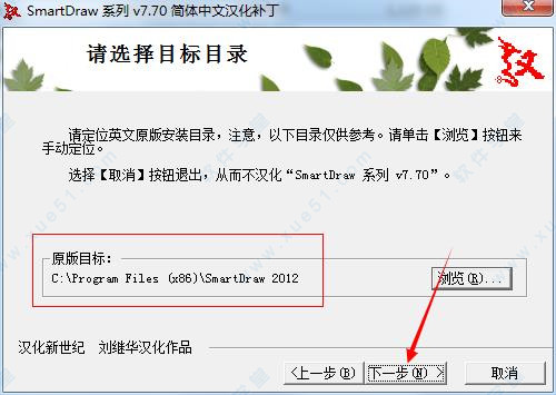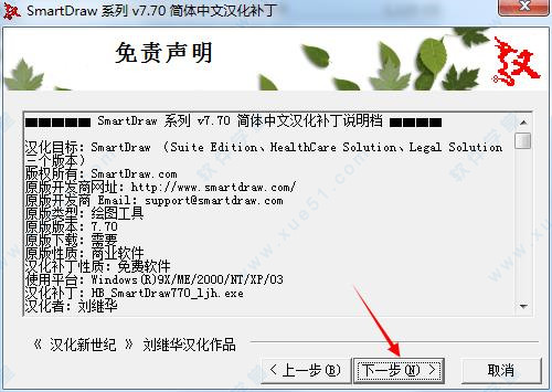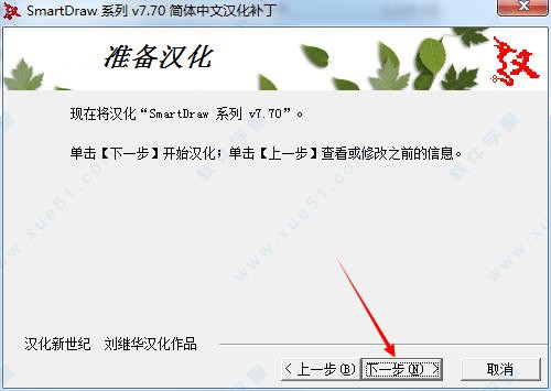 1、找到文件包中的汉化补丁并双击运行,打开后直接点击“下一步”。