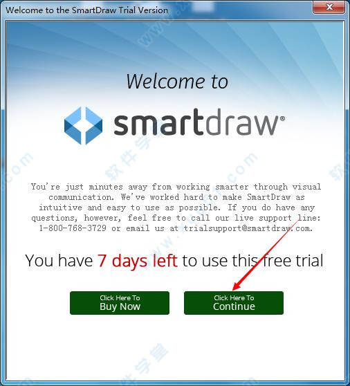 5、安装完成,提示还有七天试用期直接无视,点击“Continue”继续使用。