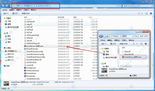 2、将文件包中的注册机复制到上一步打开的文件位置,默认路径为:【C:\SmartDraw 2018】。