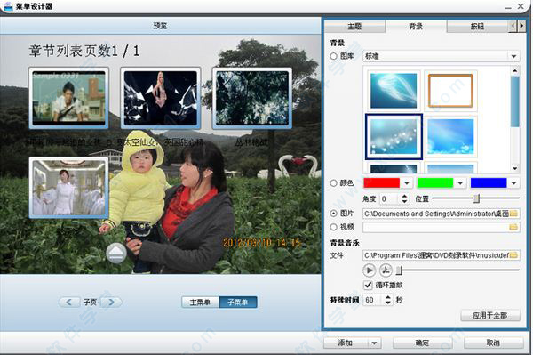 3、dvd菜单制作(有新功能):背景图片、背景音乐、背景视频,也可以不设置菜单,刻录后会自动播放.