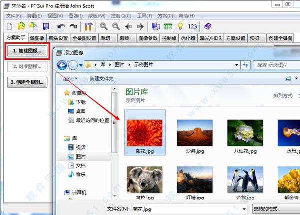 1、打开软件,进入软件界面。点击加载图像,在出现的对话框里面选择要拼图的原片,点击“打开”。