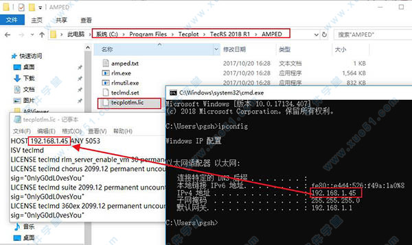 3、接着修改文件“tecplotlm.lic”将地址修改为你的电脑ip地址,端口5053不变保存。