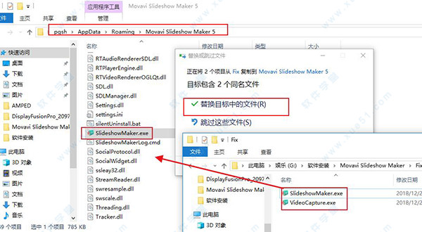 2、将这个两个破解补丁复制到软件安装目录下覆盖源文件即可完成破解,默认软件安装路径为:【C:UserspgshAppDataRoamingMovavi Slideshow Maker 5】。