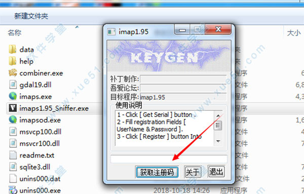 9、将软件安装目录内原始的imaps.exe文件改个名字为imapsod.exe,再接着把注册机和imaps.exe复制到软件安装目录下。