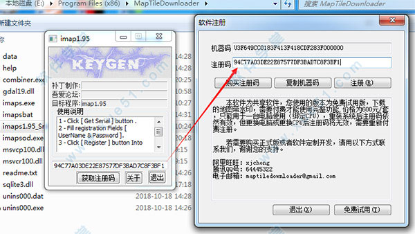 11、注册机调用imaps.exe并读出注册码,复制注册码到弹出的注册窗口,然后点注册,会弹出软件页面直接关闭即可。