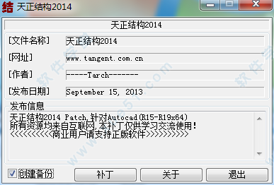 天正结构2014破解补丁是一款由网友针对结构设计绘图软件天正结构2014而设计制作的破解文件,也就是授权补丁。通过使用它可以对软件进行激活。我们大家都知道很多软件涉及版权问题,很多功能受到限制,需要收费使用,在使用方面给用户带来了极大的困扰,想要永久的使用,功能不受限制,就必须需要进行激活,那么破解补丁在这时就能派上用场,此软件也不例外,也需要激活破解。小编给大家带来了