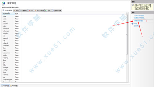 5、接下来我们打开IIS,找到对应的应用程序 ,点击选择“请求筛选”。