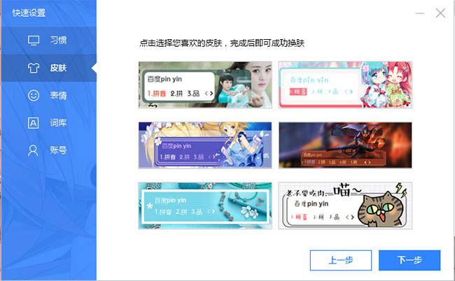 用户可以选择多种精彩皮肤,在设置点皮肤按钮,可快速查看推荐和自己的皮肤,用户可以在这里直接管理自己皮肤。百度输入法官网还签约了多位知名皮肤作者,免费分享给用户使用。