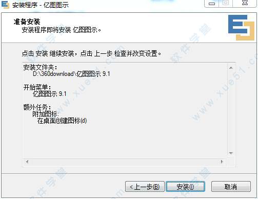 2、选择软件安装路径,可更改,也可按照默认路径即可,默认安装路径为C:Program Files (x86)亿图图示 9.1