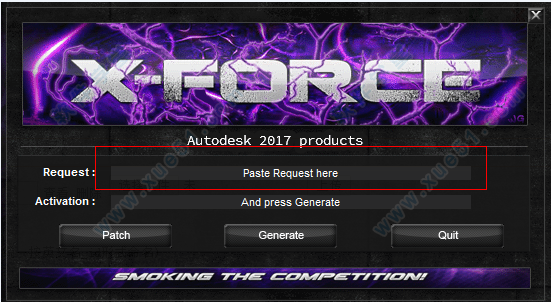 以管理员身份打开注册机,点击“Patch”,之后将申请码复制到注册机上,如下图所示位置。