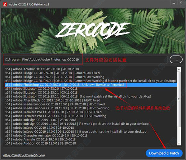 5、打开下载的Adobe Bridge CC 2019注册机文件,在下拉选项中找到【Adobe Bridge CC 2019】并根据自己的操作系统位数选择对应的版本与软件安装位置,让后点击【Download Patch】即可完成破解。