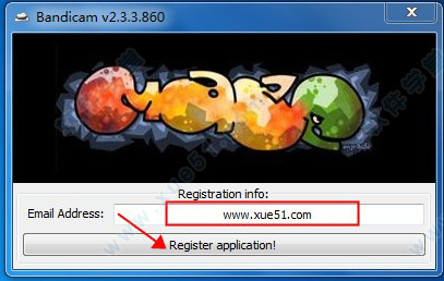 3、复制完毕后,点击鼠标右键以管理员身份运行bandicam注册机“BandicamKegGen.exe”,输入邮箱地址,然后点击“register application”即可激活破解软件