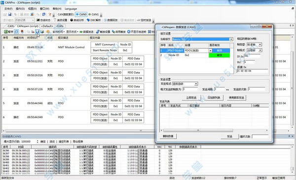 协议分析,新增精确定时发送,错误信息列表。软件的功能非常的强大,可以进行各种网络的协议分析与支持,包括iCAN,CANopen,DeviceNet协,CAN底层,SAE J1939等等