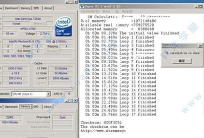 5、计算完成,这里用的是Yonah双核处理器,主频为2GHz,DDR2内存工作在444MHz的频率下,成绩为31.656秒。超频加压双管齐下:让Super Pi成为榨汁机,如何提高Super Pi的运行速度?这恐怕是大家最关心的问题。Pi的计算主要依赖的配件是CPU、内存以及硬盘。因此,这三个配件的速度越快,Pi的计算速度也越快。基于这样的理念,我们不难想到,超频是最简单的办法。