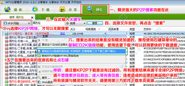 除了精灵收集整理的P2P资源之外,精灵还可以搜索全球KAD网络上的P2P资源,为大家提供更多精彩内容,请按下图使用搜索功能,获得更多资源。