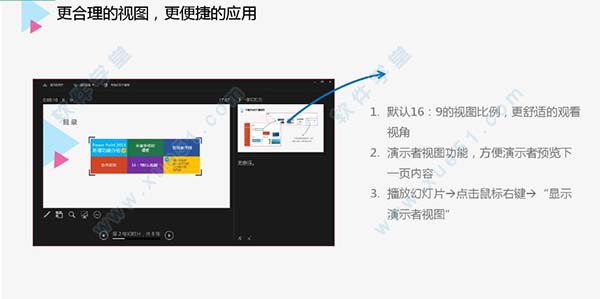 五、ppt2013和ppt2017的区别1、从功能上来讲用powerpoint2007设计幻灯片是非常方便的,它集成了许多powerpoint2003上没有的功能。如在一个页面中我们设计了三个动画,powerpoint2003一旦修改起来简直是没有办法来修改,你不知道是现在是到了哪一层。而powerpoint2007则有一个很大的改进就是可以分窗口显示(视图中)。和photoshop一样可以通过点击前面的小眼睛显示与隐藏当前的层图片,这样修改起来很方便。