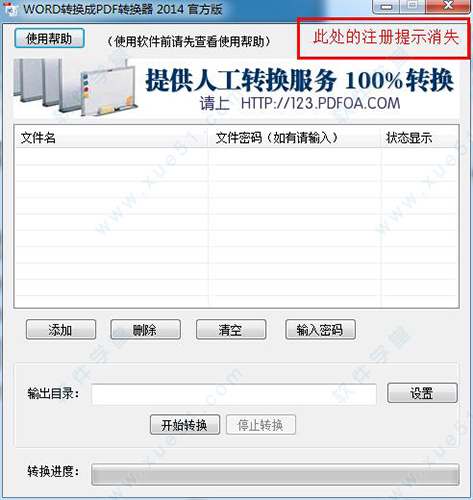 pdfoa(word转换成pdf转换器)是一款功能强大好用的word转pdf的转换器,由于软件本身是收费的,所以为大家带来了破解版。它的软件界面非常的简单明了,使用操作也是非常的简单,仅仅只要要3步即可完成转换。在转换的过程它能够非常好且快速准确的将您word文档中的文字及图片提取出来,然后转换成pdf格式,转换后的文档可以再次编辑,另外它还可以进行批量转换,转换速度照常的快,100页文档只要1分钟就可以转换完成。有需要的朋友来软件学堂下载,本站提供的是免注册的,并且在pdfoa安装包中还为大家附上破解补丁。