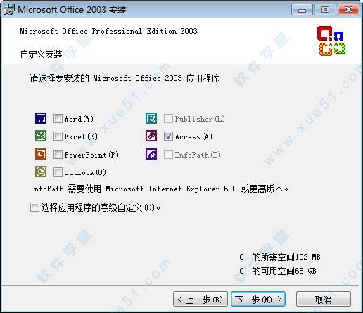 里面都是office的程序,您可以根据需求自由勾选一个或多个,小编这里只安装了access2003程序。