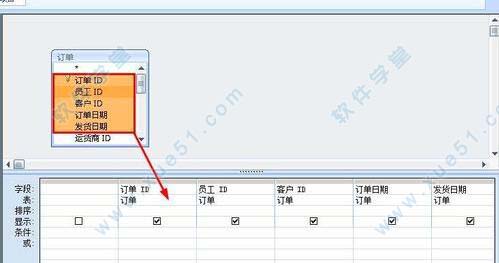 3、选中这四个字段,然后拖拽到下面的表格设计中;
