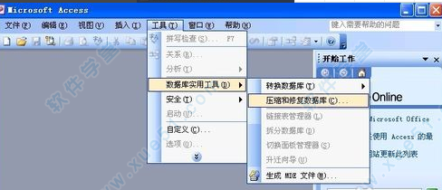 一、压缩和修复未打开的Access文件1、启动软件,单击“工具”菜单,打开的菜单指向“数据库实用工具”,在下一级菜单中单击“压缩和修复数据库”命令;