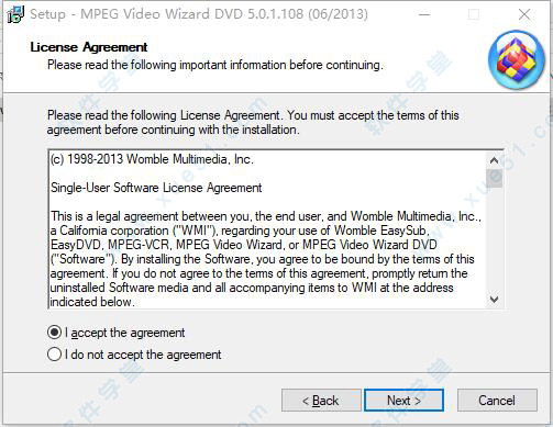 1、下载并解压安装包压缩包,然后双击运行“womble_dvd5.exe”程序进行软件安装,进入安装向导界面