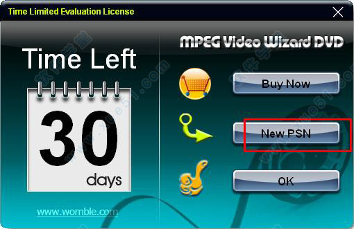 1、运行打开软件,我们可以看到软件试用期限只有30天,点击new psn进入激活界面,对软件进行破解