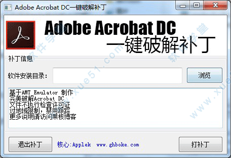 1、选择Acrobat DC程序目录,点击打补丁即可。