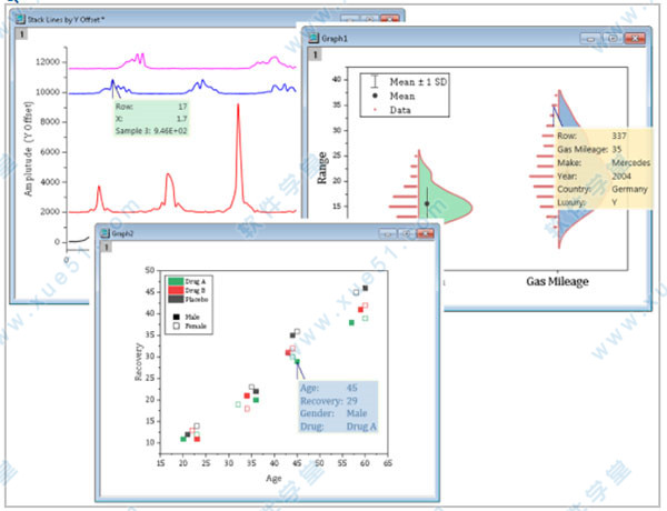 四、数据点提示1、将鼠标悬停在图形的数据点上以读取XY或Z坐标值。