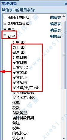 3、在字段李彪中,拖动订单表中的下列字段到窗体的主体部分,这就就建立了主窗体