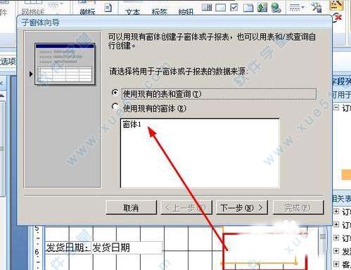 6、选择使用现有的查询和表,这个选项的意思是子窗体的数据源是表或者查询,如果选择【使用现有的窗体】那么数据源就是窗体了,我们点击下一步