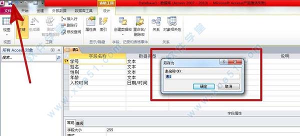 5、点击左上方的“保存”按钮,在弹出的对话框中命名你创建的这个表的名称