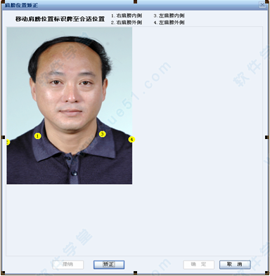 4、有时候我们会遇到无论怎么替换,总会有地方没有完全替换掉的情况。这时候我们还可以利用肩膀位置矫正按钮,对证件照的肩膀高低进行调整。将两边的肩膀的位置调整到恰当的位置时,我们再对证件照片进行服装替换操作。