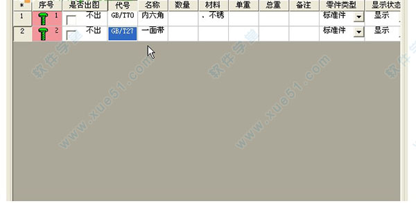 10、这里是调整零件明细的地方,调整以后您的零件数据就会自动添加在设计图上