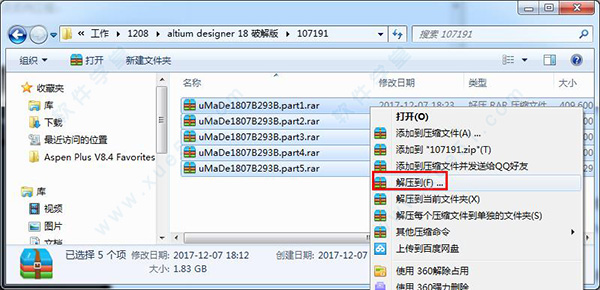 1、在本站下载好软件安装包,然后将他们全部都选中然后进行解压。