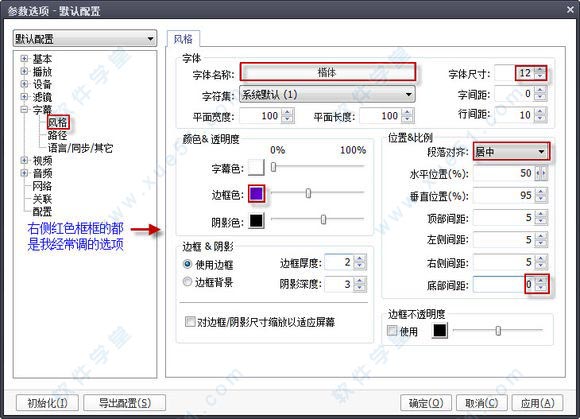 想使用自己定义的字幕参数,则选择“使用用户自定义的风格”或者“使用默认配置风格”都可,不过在播放双字幕的视频最好选前者