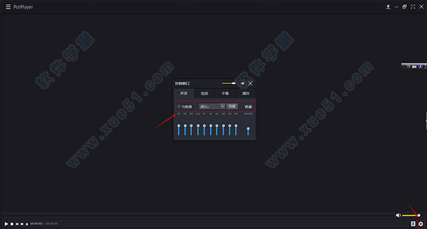 3、在播放列表旁的“设置”图标,点击即可打开“控制窗口”,可以自由调节声音、视频、字幕以及播放的多种参数
