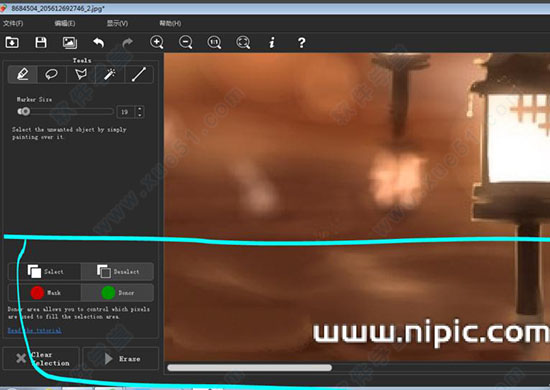 2、套索工具——这个很好用,只要是在套索内的都可以去除,半弧可以自动补完整,同样去除。