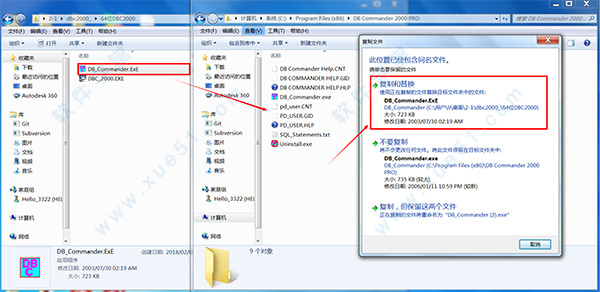1、安装完成后先不要运行软件,回到之前下载好的安装包目录,将汉化补丁文件夹中“DB_Commander.ExE”复制到软件的安装目录下,默认安装路径为“C:Program FilesDB Commander 2000 PRO”,在弹出的提示窗口中选择“复制并替换”按钮;;